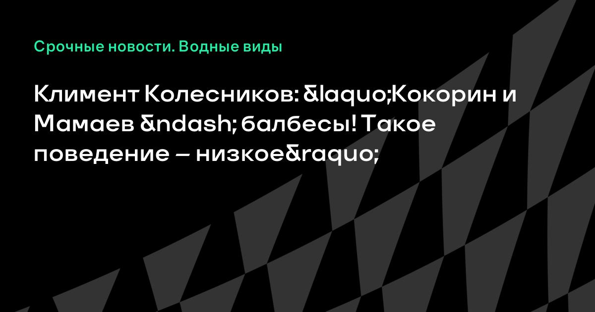 Трехкратный чемпион Европы и мировой рекордсмен по плаванию Климент Колесников прокомментировал поведение футболистов Александра Кокорина и Павла Мамаева.