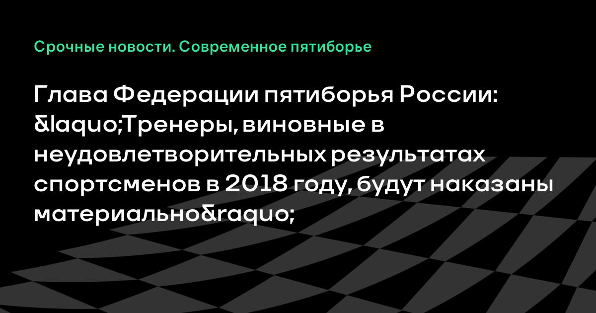 Глава Федерации пятиборья России: «Тренеры, виновные в неудовлетворительных результатах спортсменов в 2018 году, будут наказаны материально»
