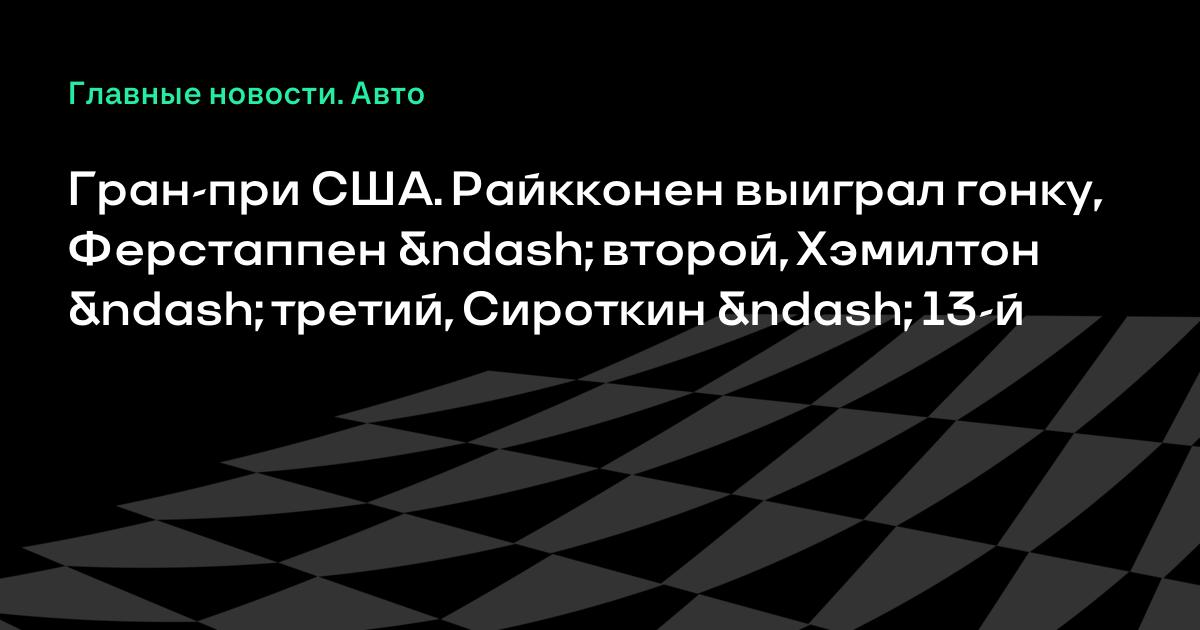 Гран-при США. Райкконен выиграл гонку, Ферстаппен – второй, Хэмилтон – третий, Сироткин – 13-й