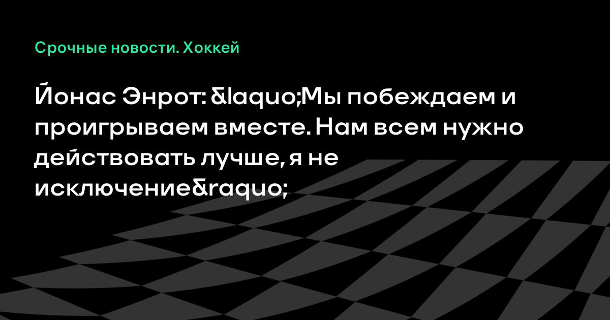 Йонас Энрот: «Мы побеждаем и проигрываем вместе. Нам всем нужно действовать лучше, я не исключение»