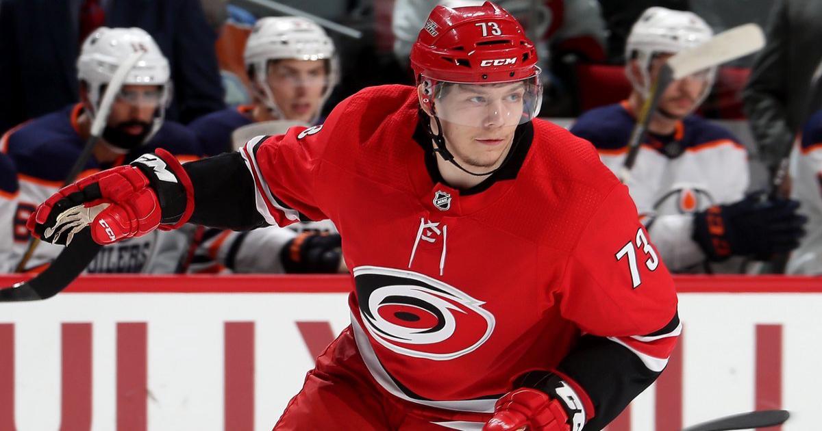Форвард «Каролины» Валентин Зыков играл в первой бригаде большинства «Харрикейнс» в матче с «Детройтом» (3:1).