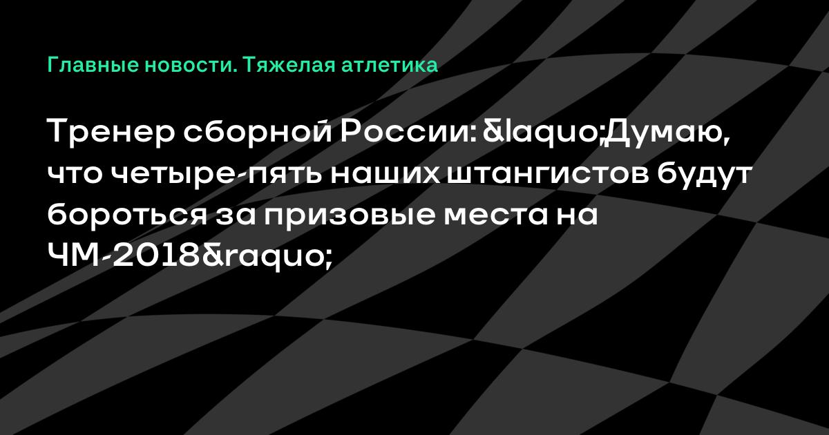 Тренер сборной России: «Думаю, что четыре-пять наших штангистов будут бороться за призовые места на ЧМ-2018»