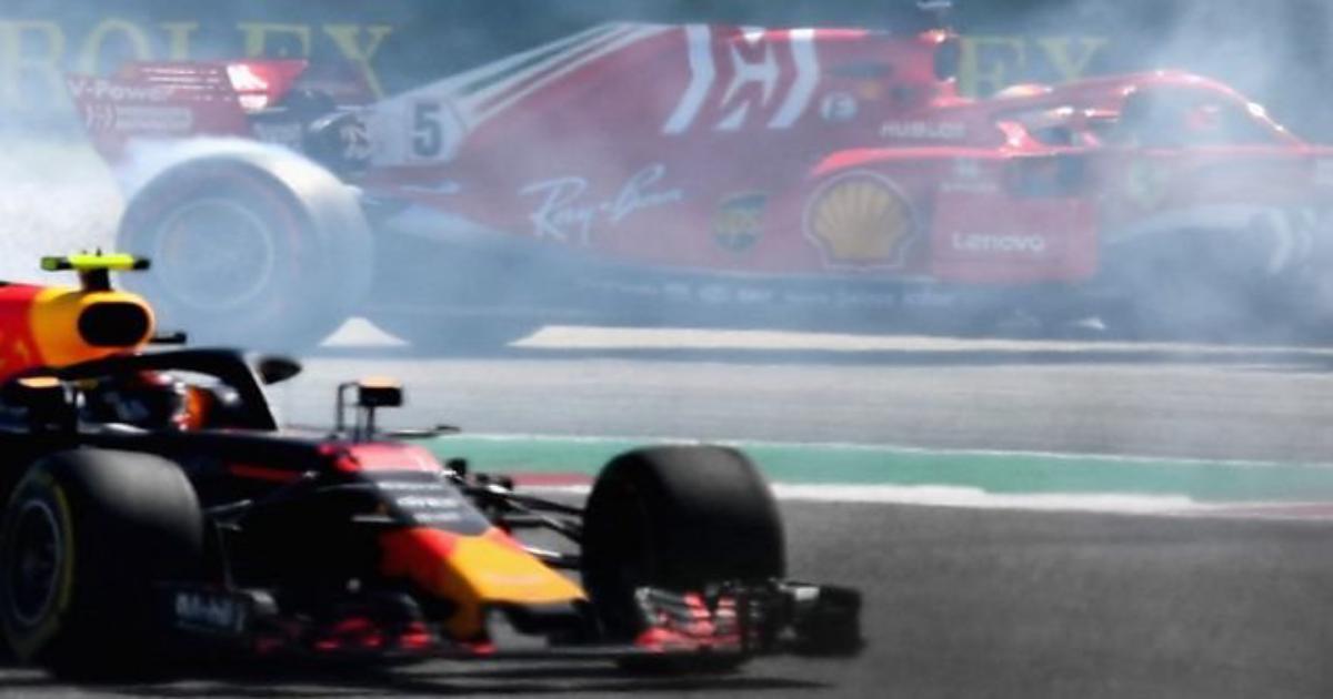 Но Себастьян, стремясь избежать столкновения, отворачивает в момент, когда болид начинает скользить, что неизбежно приводит к развороту. Похоже, он действует нерешительно. Он не так смело идет на маневр, как Риккардо или Фернандо Алонсо – возможно, два лучших пилота в этом спорте в борьбе бок о бок.