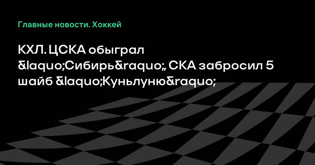 КХЛ. ЦСКА обыграл «Сибирь», СКА забросил 5 шайб «Куньлуню»