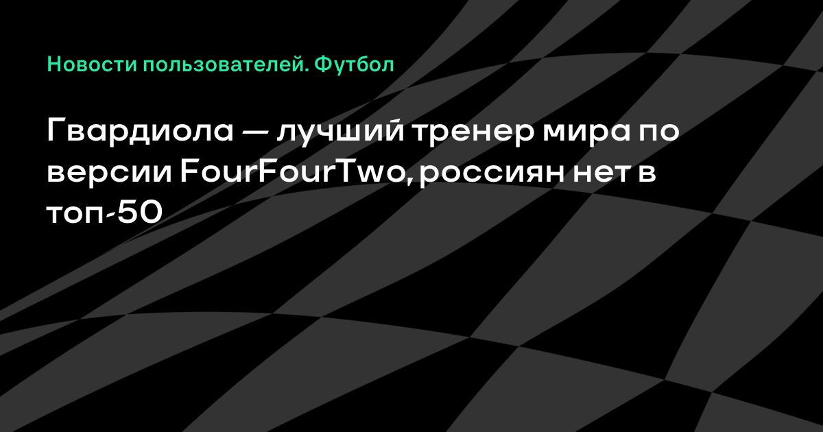 Гвардиола — лучший тренер мира по версии FourFourTwo, россиян нет в топ-50