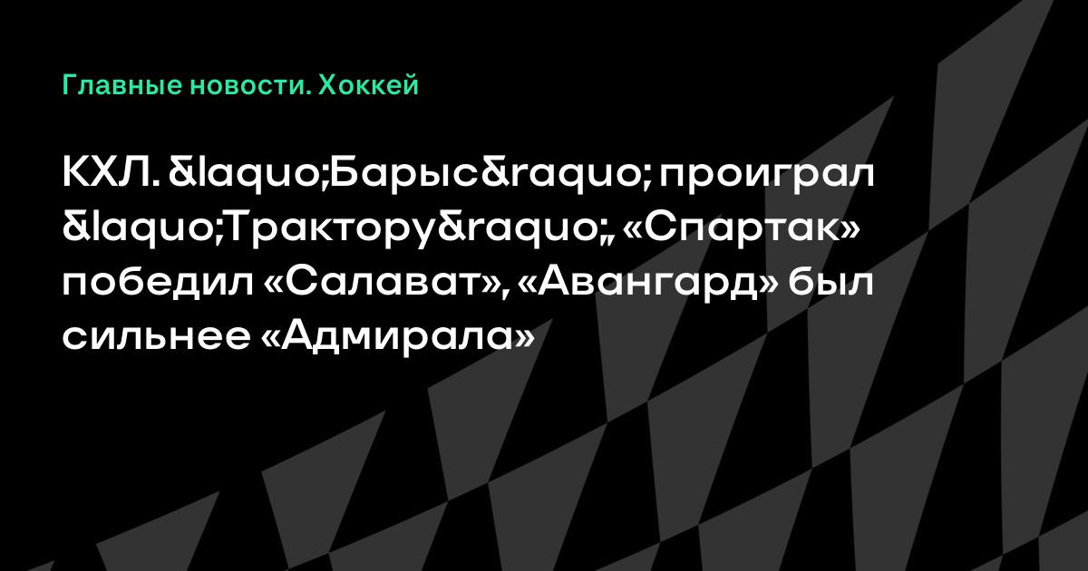 КХЛ. «Барыс» проиграл «Трактору», «Спартак» победил «Салават», «Авангард» был сильнее «Адмирала»