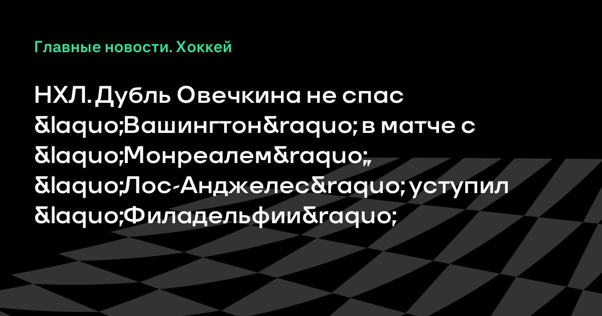 НХЛ. Дубль Овечкина не спас «Вашингтон» в матче с «Монреалем», «Лос-Анджелес» уступил «Филадельфии»