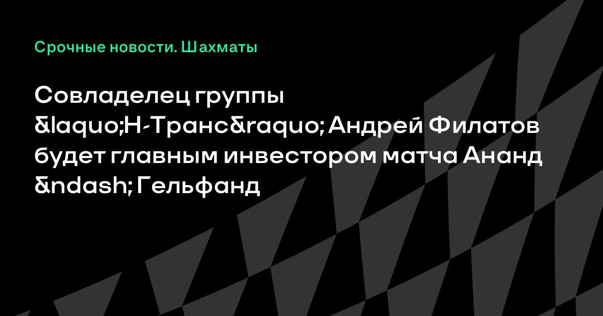 Совладелец группы «Н-Транс» Андрей Филатов будет главным инвестором матча Ананд – Гельфанд