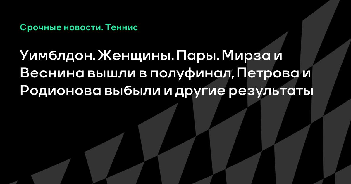 Уимблдон. Женщины. Пары. Мирза и Веснина вышли в полуфинал, Петрова и Родионова выбыли и другие результаты