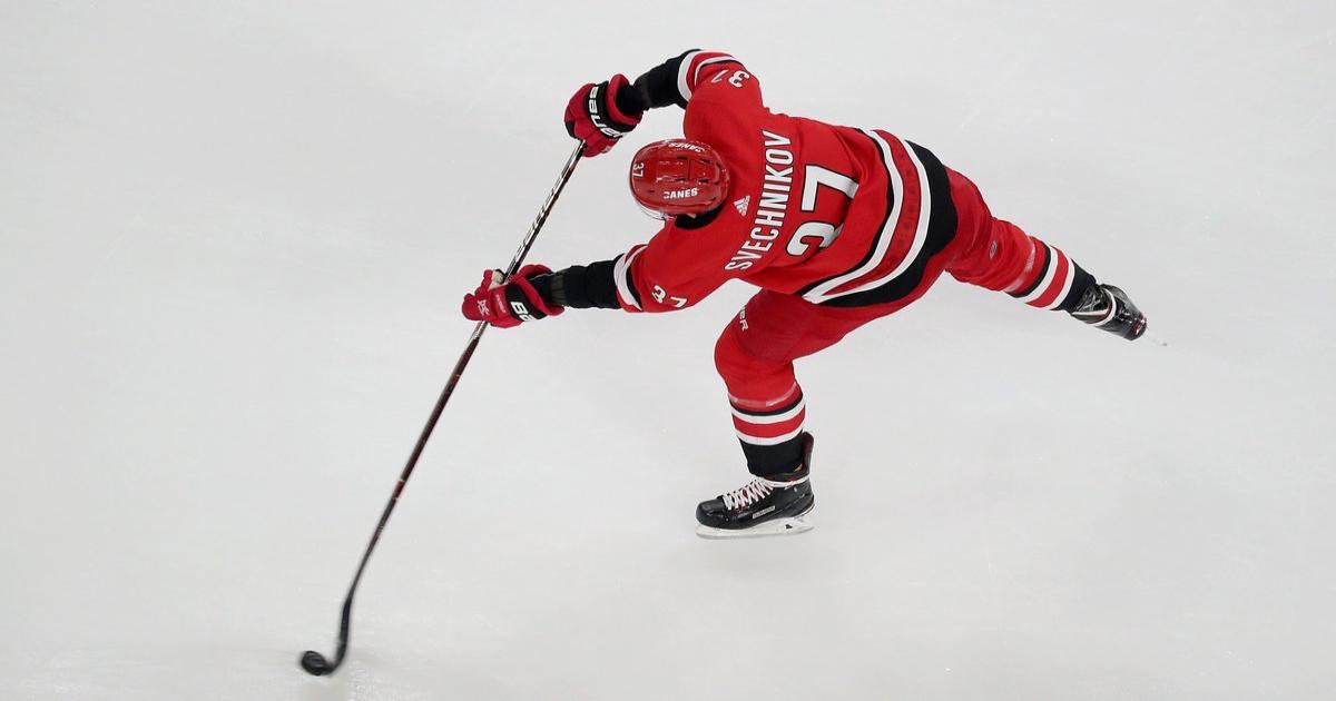 Форвард «Каролины» Андрей Свечников забросил шайбу в матче с «Чикаго» (4:3).