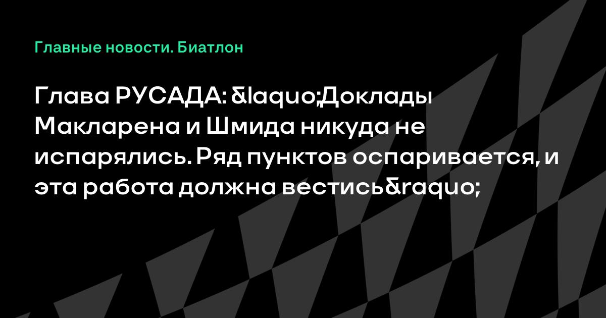 Глава РУСАДА: «Доклады Макларена и Шмида никуда не испарялись. Ряд пунктов оспаривается, и эта работа должна вестись»