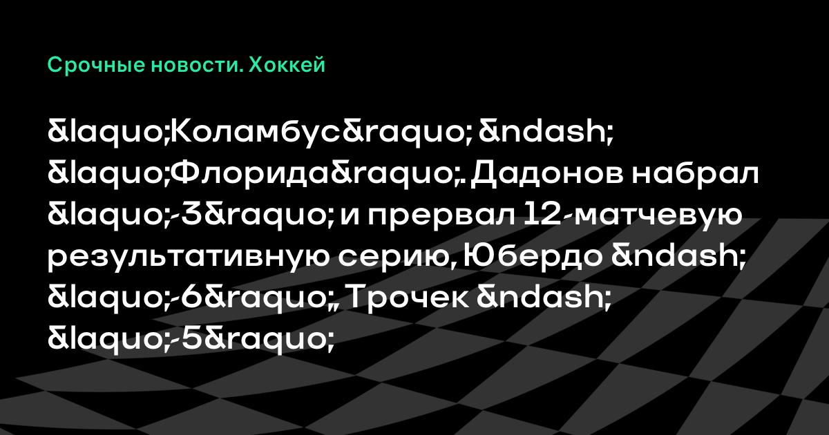 «Коламбус» – «Флорида». Дадонов набрал «-3» и прервал 12-матчевую результативную серию, Юбердо – «-6», Трочек – «-5»