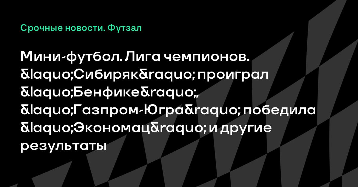 Мини-футбол. Лига чемпионов. «Сибиряк» проиграл «Бенфике», «Газпром-Югра» победила «Экономац» и другие результаты