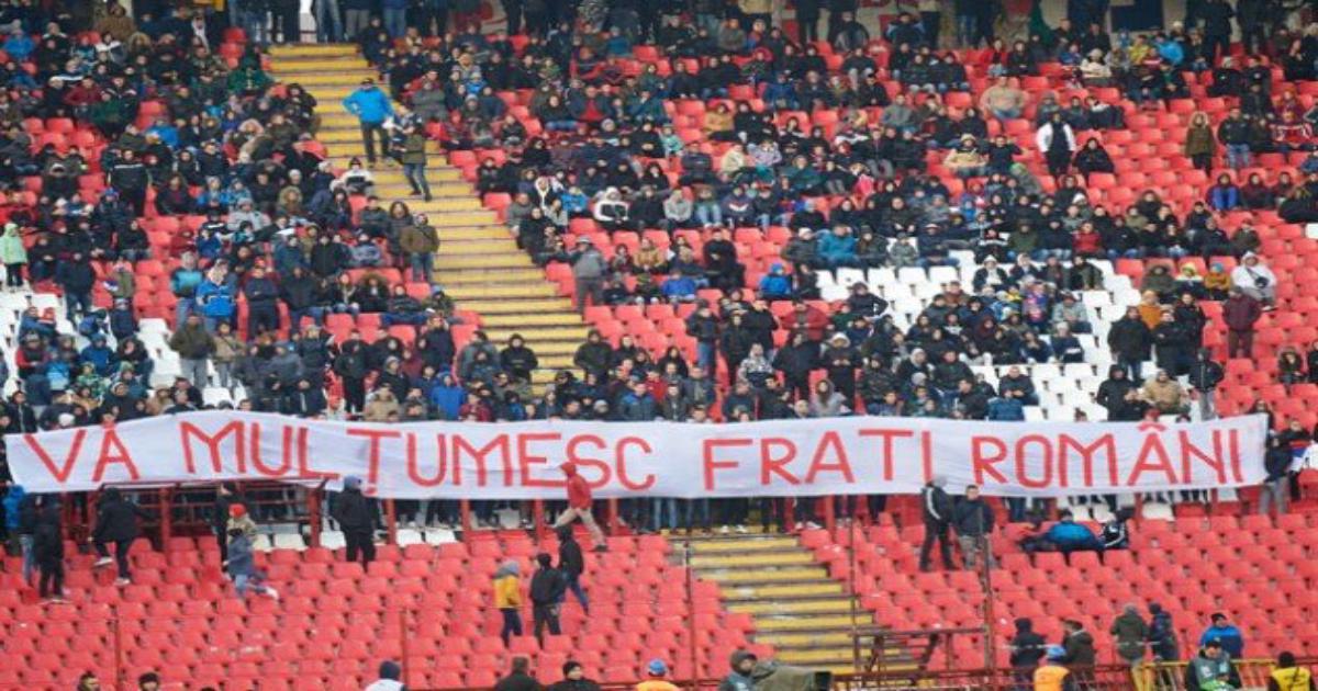 Сербские болельщики на игре с Черногорией вывесили баннер на румынском: «Спасибо вам, братья румыны».
