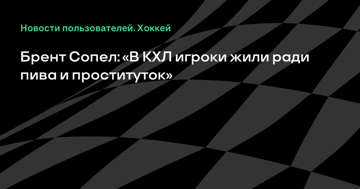 Брент Сопел: «В КХЛ игроки жили ради пива и проституток»