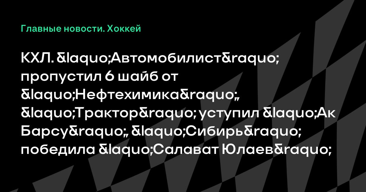 КХЛ. «Автомобилист» пропустил 6 шайб от «Нефтехимика», «Трактор» уступил «Ак Барсу», «Сибирь» победила «Салават Юлаев»