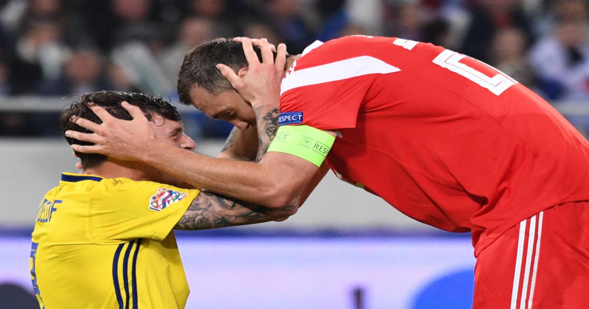 Сборная России проигрывает сборной Швеции в матче Лиги наций (0:1, перерыв).
