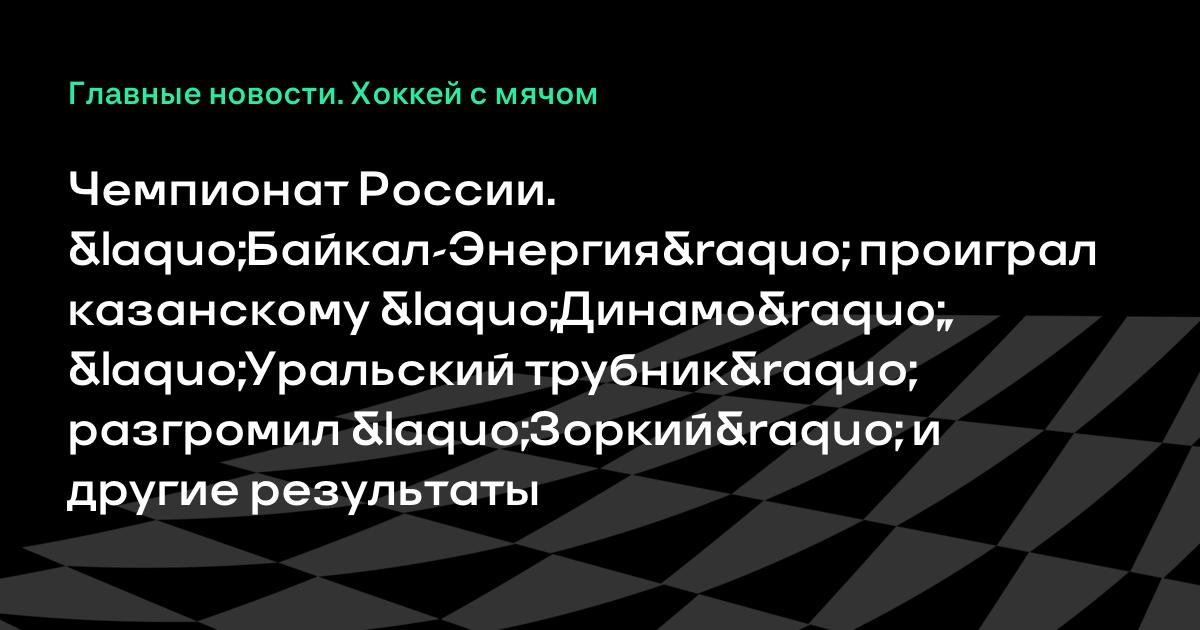 Чемпионат России. «Байкал-Энергия» проиграл казанскому «Динамо», «Уральский трубник» разгромил «Зоркий» и другие результаты