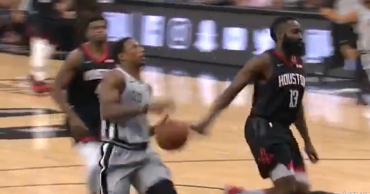 Лидер «Рокетс» Джеймс Харден в матче с «Сан-Антонио» (136:105) оригинальным способом сыграл в защите против Демара Дерозана.