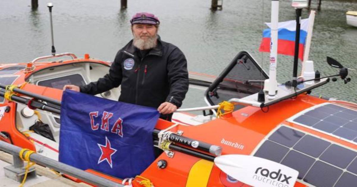 Накануне знаменитый путешественник Федор Конюхов на весельной лодке начал плавание протяженностью 5500 морских миль – от Новой Зеландии к мысу Горн (Южная Америка). На борту его судна находится и флаг хоккейного клуба СКА.