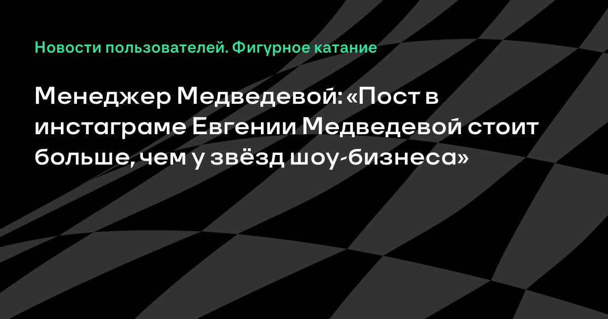 Менеджер Медведевой: «Пост в инстаграме Евгении Медведевой стоит больше, чем у звёзд шоу-бизнеса»