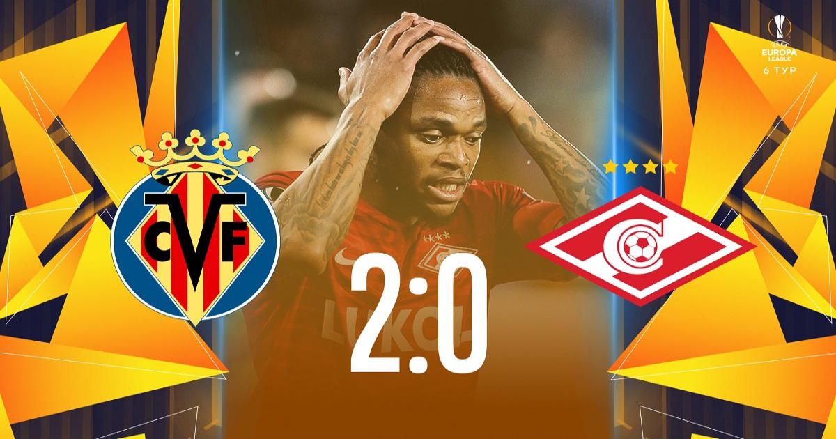 В матче 6-го тура группового этапа Лиги Европы «Вильярреал» победил «Спартак» (2:0) на «Эстадио де ла Серамика» в Вильярреале.