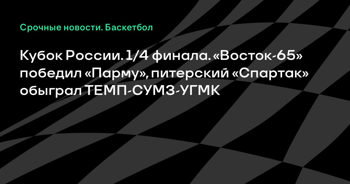 Кубок России. 1/4 финала. «Восток-65» победил «Парму», питерский «Спартак» обыграл ТЕМП-СУМЗ-УГМК
