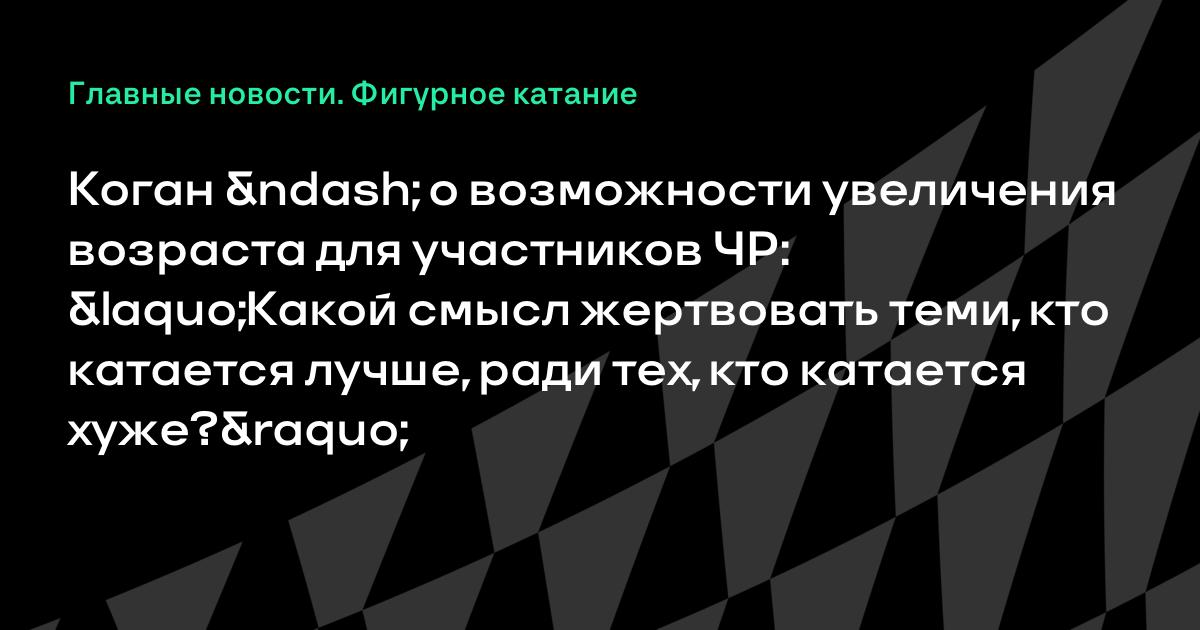 Коган – о возможности увеличения возраста для участников ЧР: «Какой смысл жертвовать теми, кто катается лучше, ради тех, кто катается хуже?»
