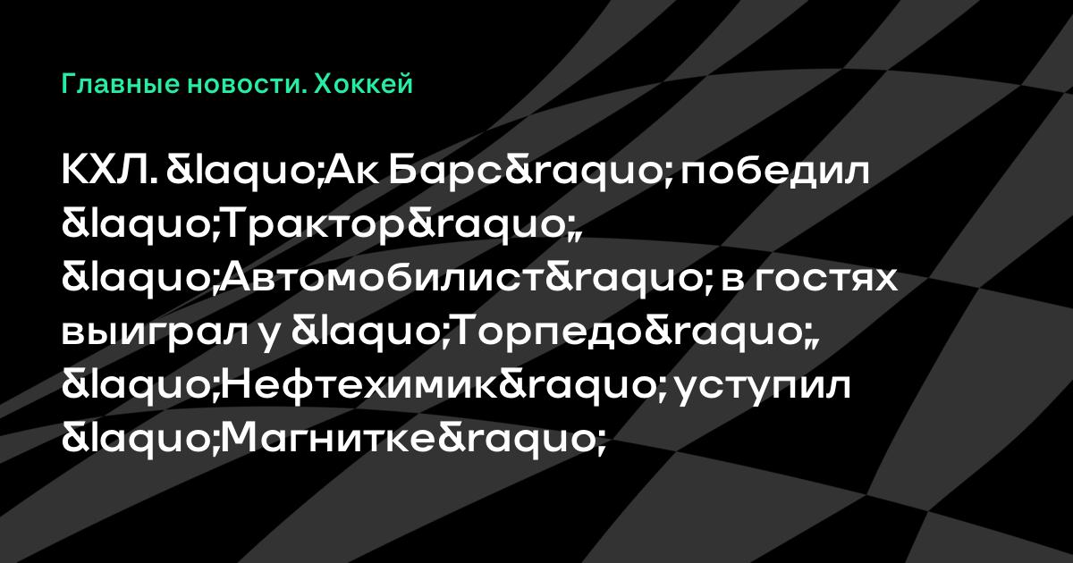 КХЛ. «Ак Барс» победил «Трактор», «Автомобилист» в гостях выиграл у «Торпедо», «Нефтехимик» уступил «Магнитке»