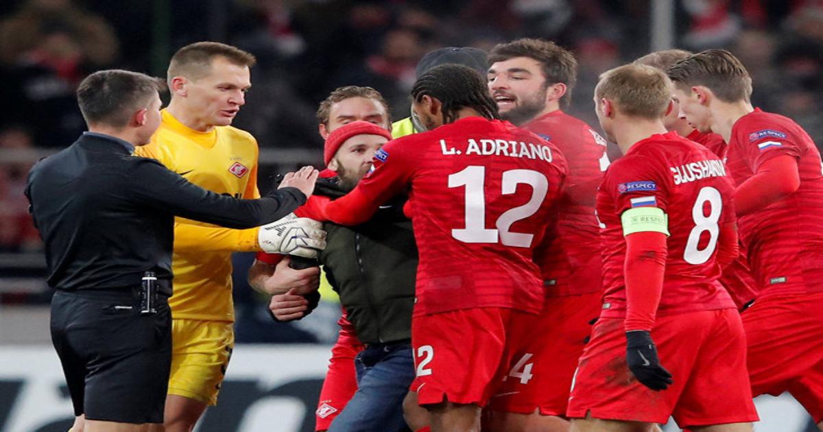 Болельщик «Спартака» выбежал на поле, чтобы поговорить с Глушаковым. Тот его оттолкнул