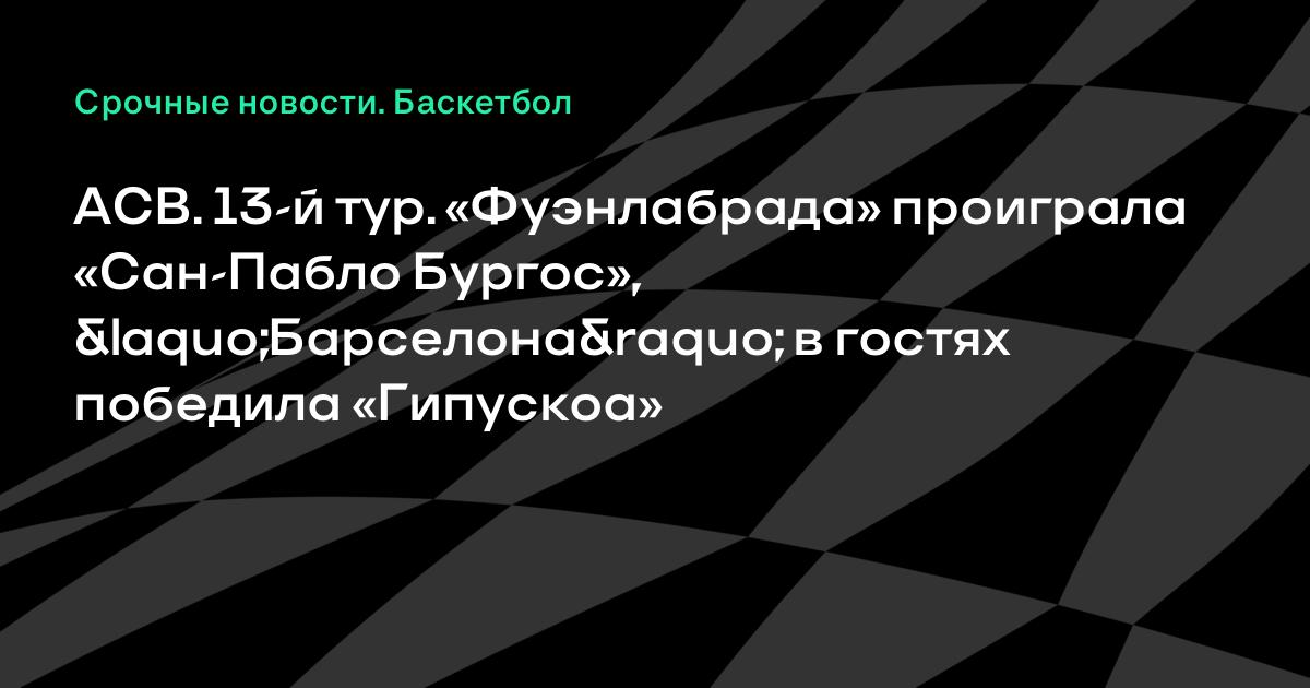 ACB. 13-й тур. «Фуэнлабрада» проиграла «Сан-Пабло Бургос», «Барселона» в гостях победила «Гипускоа»