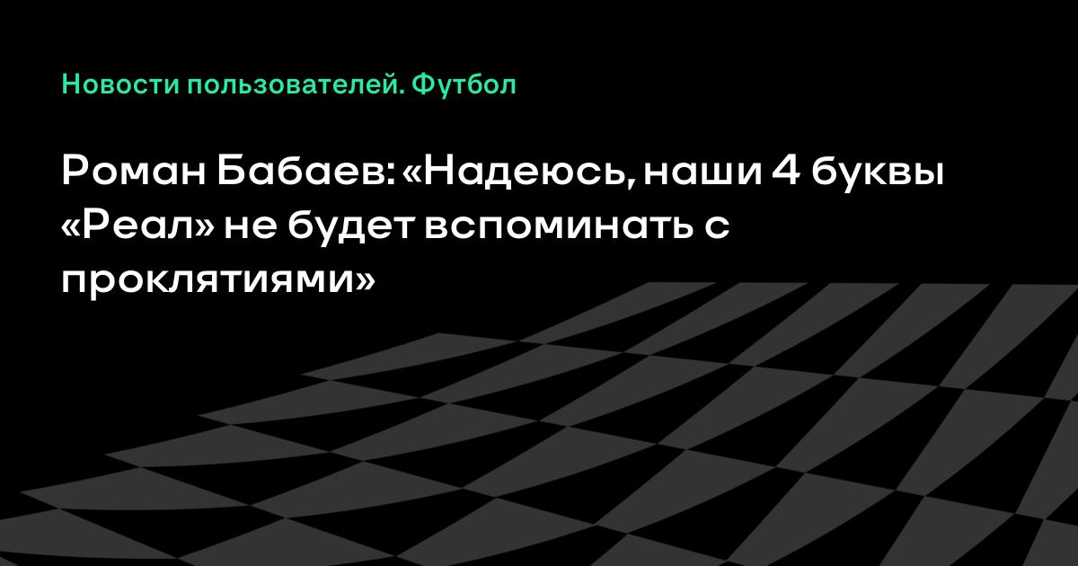 Роман Бабаев: «Надеюсь, наши 4 буквы «Реал» не будет вспоминать с проклятиями»