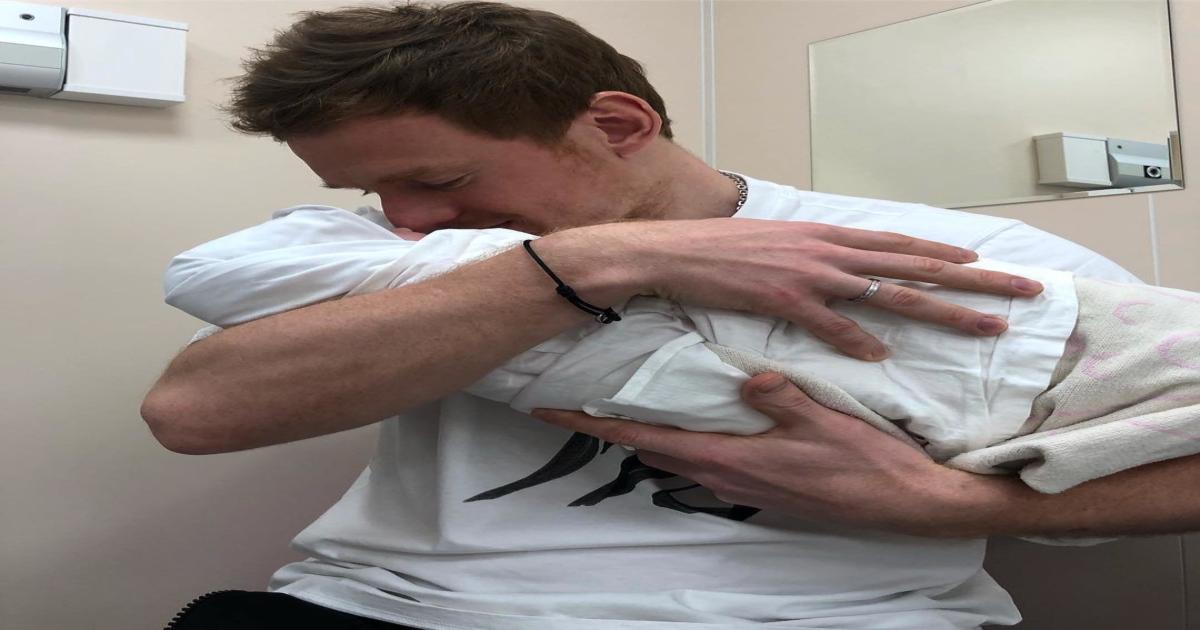 Она опубликовала фотографию своего мужа, нападающего «Салавата Юлаева» Дмитрия Кугрышева, с дочкой.