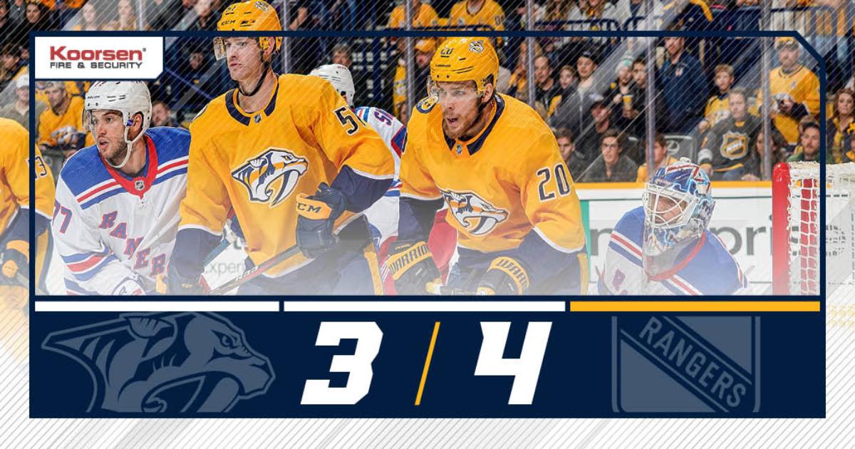 «Нэшвилл» уступил «Рейнджерс» (3:4) в очередном матче регулярного чемпионата НХЛ.