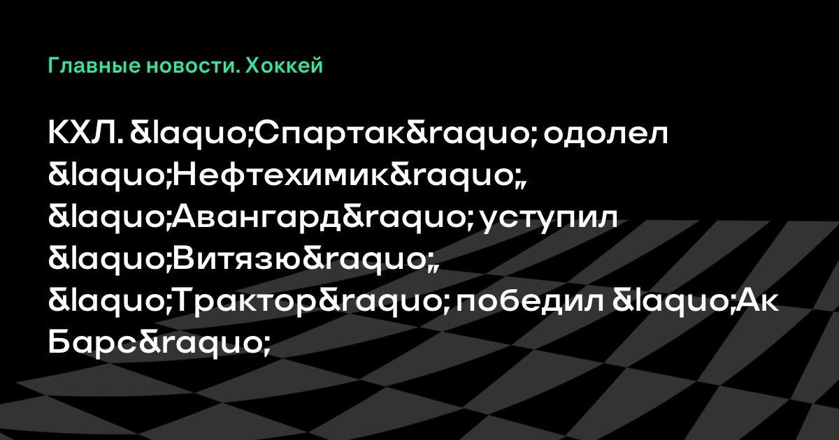 КХЛ. «Спартак» одолел «Нефтехимик», «Авангард» уступил «Витязю», «Трактор» победил «Ак Барс»