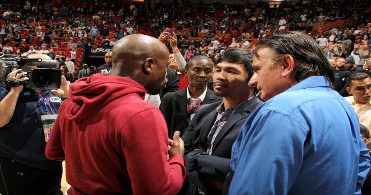 Пакьяо подошел к Мэйвезеру, который сидел в первом ряду, после чего боксеры поздоровались.