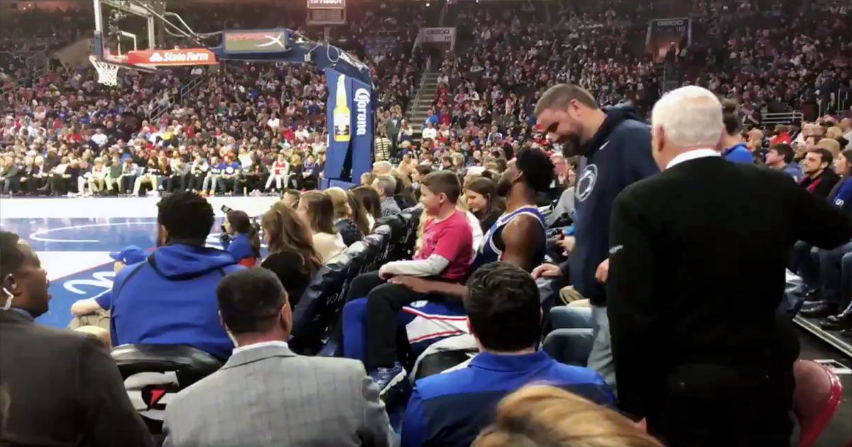 Эмбиид во время матча с «Уизардс» посидел на трибуне с юным болельщиком на руках