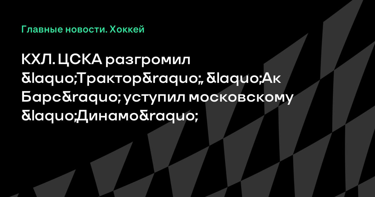 КХЛ. ЦСКА разгромил «Трактор», «Ак Барс» уступил московскому «Динамо»