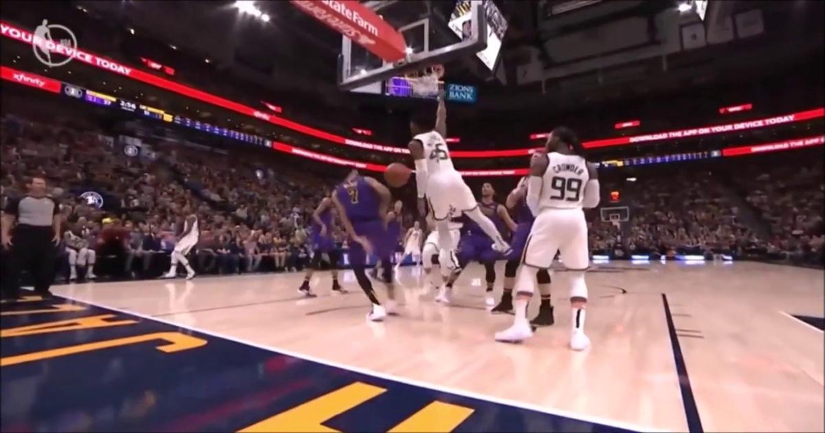 Защитник «Юты» Донован Митчелл стал автором эффектного данка в матче с «Лейкерс» (113:95).