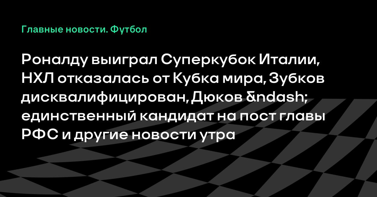 Роналду выиграл Суперкубок Италии, НХЛ отказалась от Кубка мира, Зубков дисквалифицирован, Дюков – единственный кандидат на пост главы РФС и другие новости утра