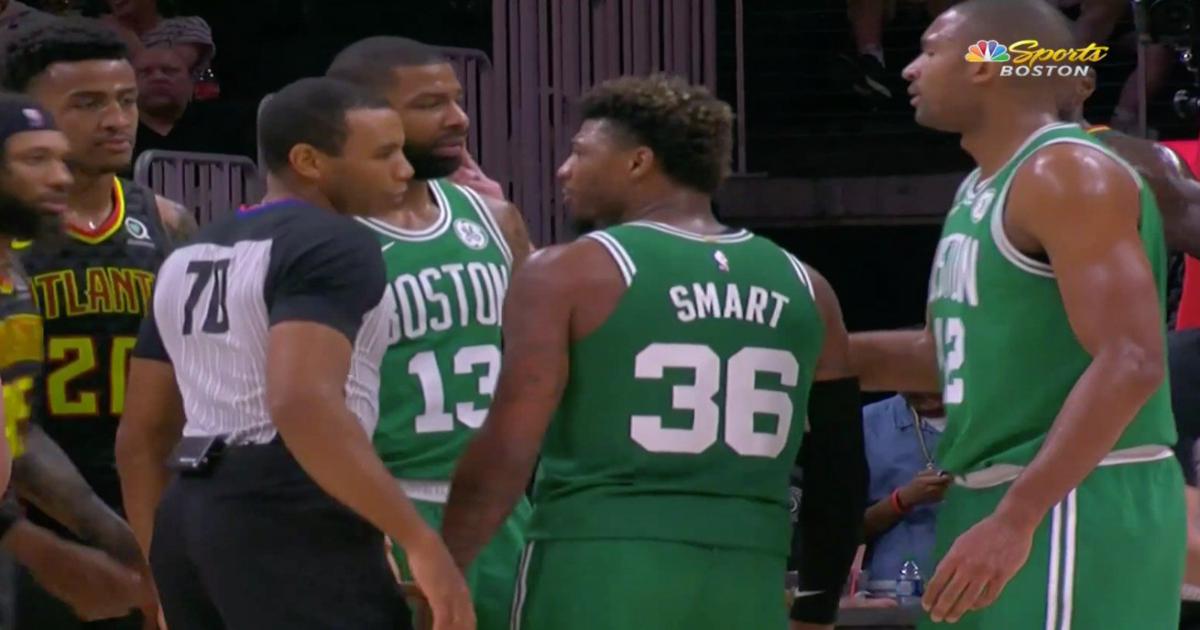 Защитник «Бостона» Маркус Смарт был удален с площадки в 3-й четверти матча с «Атлантой» (113:105) после стычки с форвардом соперника Деандре Бембри.