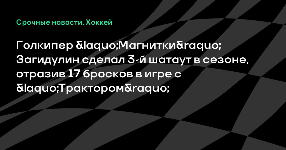 Голкипер «Магнитки» Загидулин сделал 3-й шатаут в сезоне, отразив 17 бросков в игре с «Трактором»
