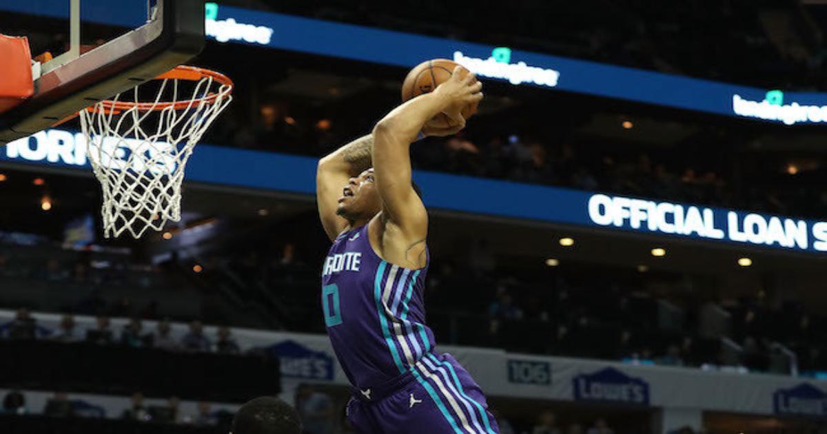 Легкий форвард «Хорнетс» Майлз Бриджес в матче с «Бакс» (99:108) эффектно добавил сверху после промаха Кембы Уокера.