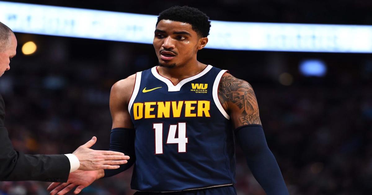 Атакующий защитник «Денвера» Гэри Харрис в 1-й четверти матча с «Филадельфией» обыграл соперника в быстром отрыве, переложив мяч за спиной, и вколотил сверху.