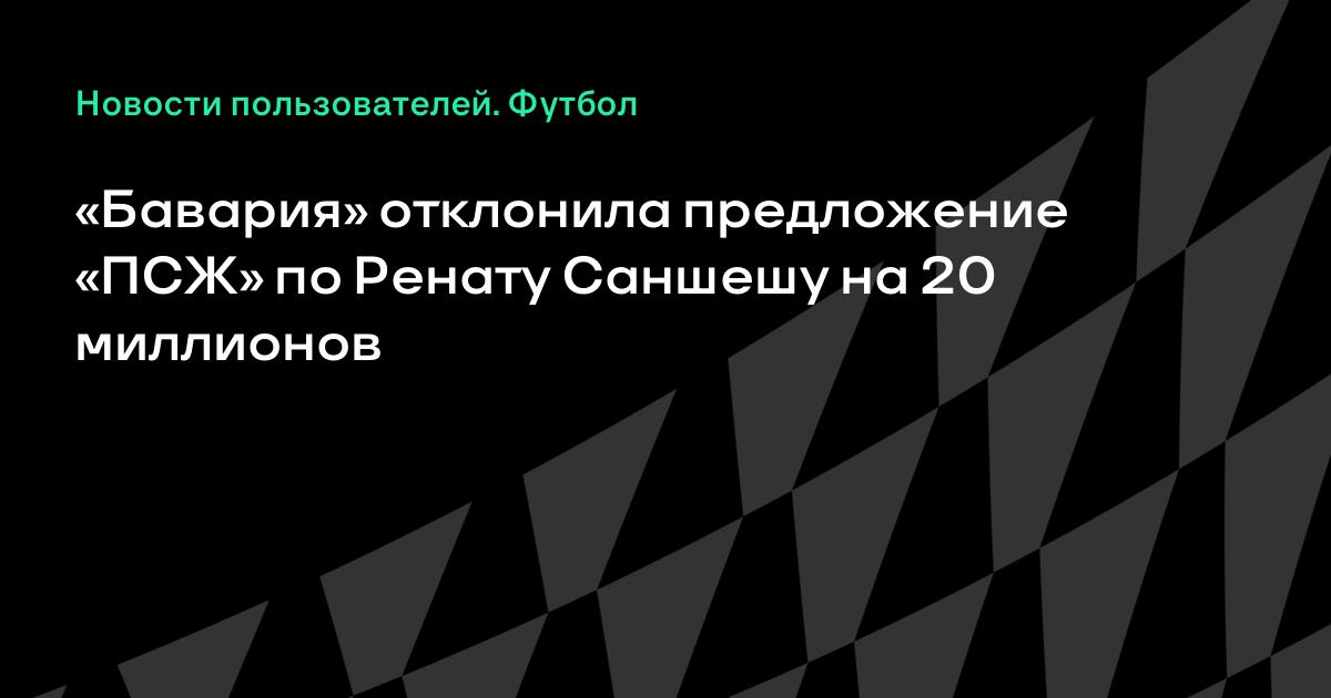 Руководство «Баварии» отклонило предложение «ПСЖ» по переходу полузащитника Ренату Саншеша. По информации источника, парижане предлагали 20 миллионов евро.