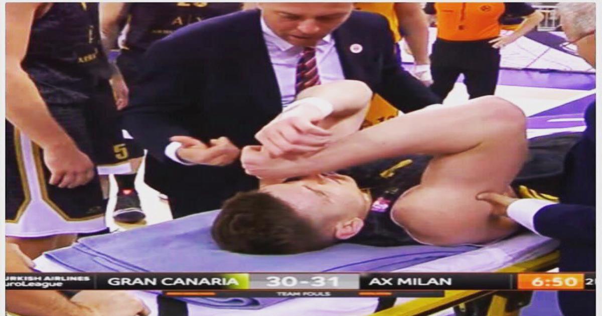 Центровой «Милана» Артурас Гудайтис получил травму колена в овертайме матче с «Гран-Канарией». По словам главного тренера клуба Симоне Пьяниджани, у игрока подозревают разрыв крестообразных связок колена.