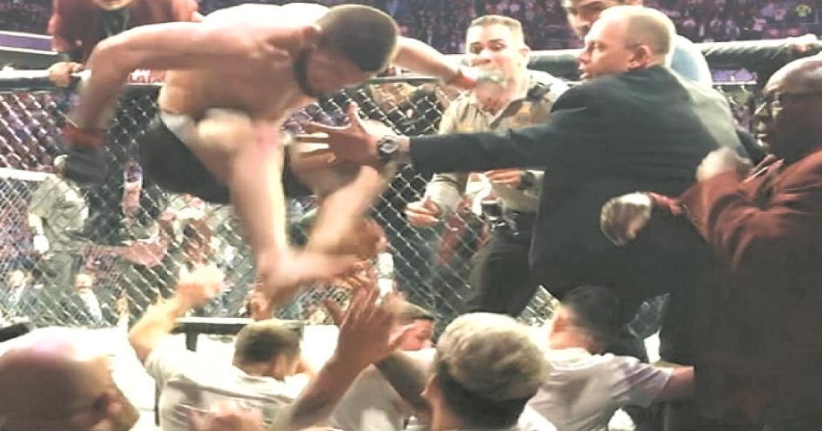 После победы над Конором Макгрегором на UFC 229 Хабиб выпрыгнул из клетки и напал на Диллона Дэниса. После этого завязалась массовая драка.