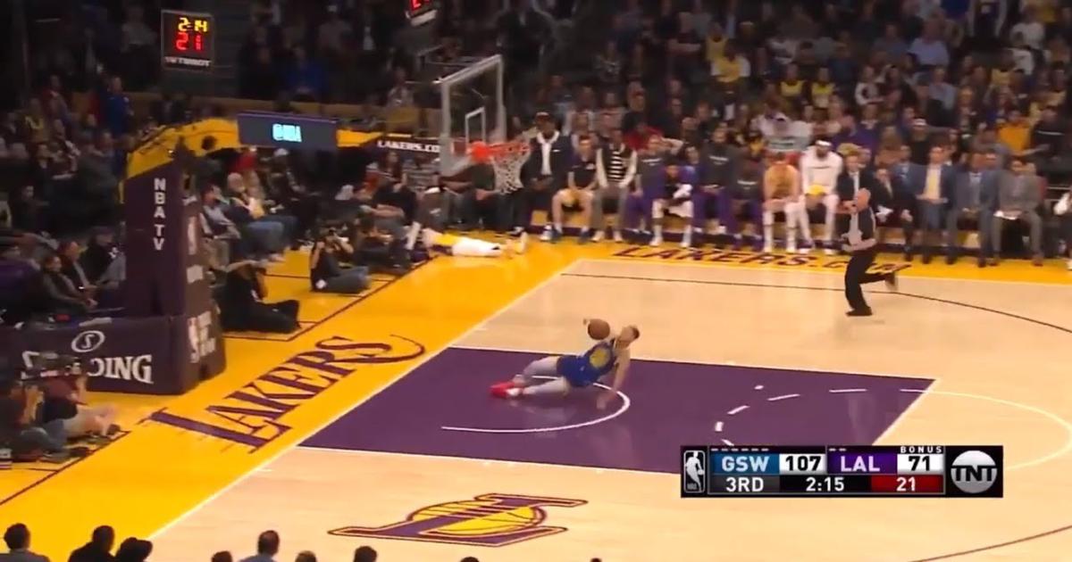 Стеф Карри поскользнулся при попытке данка, а затем запустил сквозняк из-за дуги