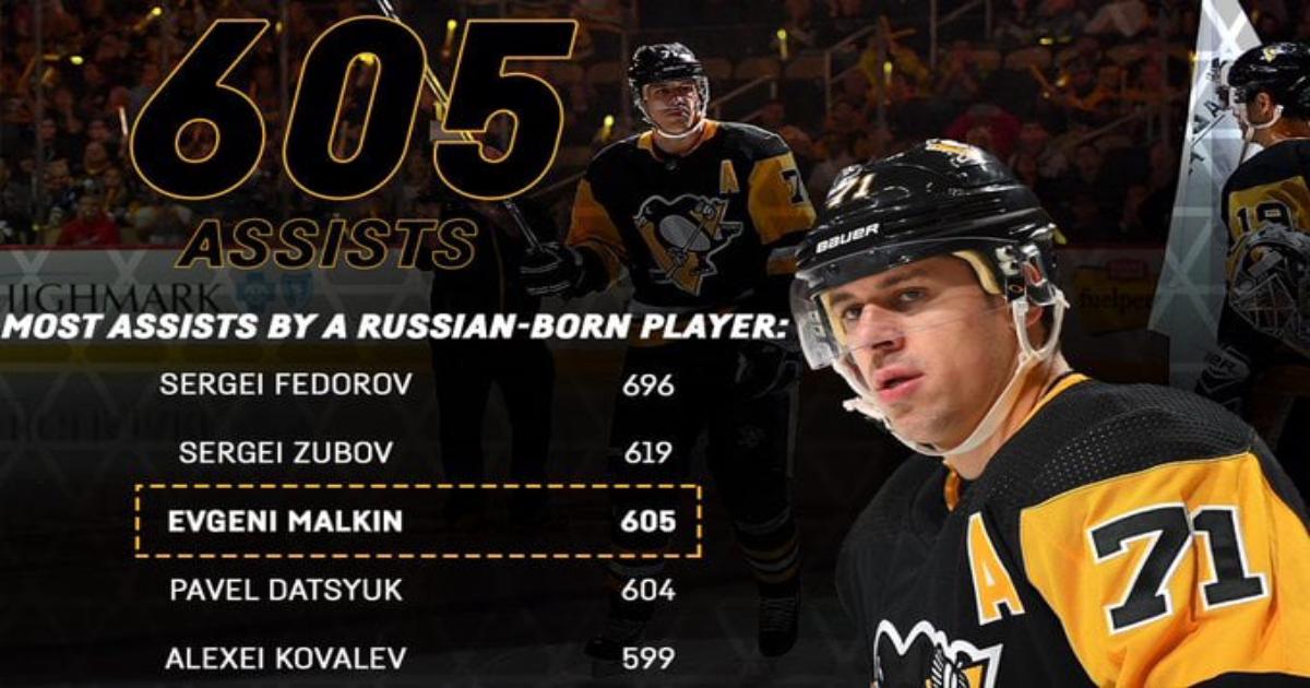 НХЛ. Малкин вышел на 3-е место по передачам для игроков из России, обойдя Дацюка