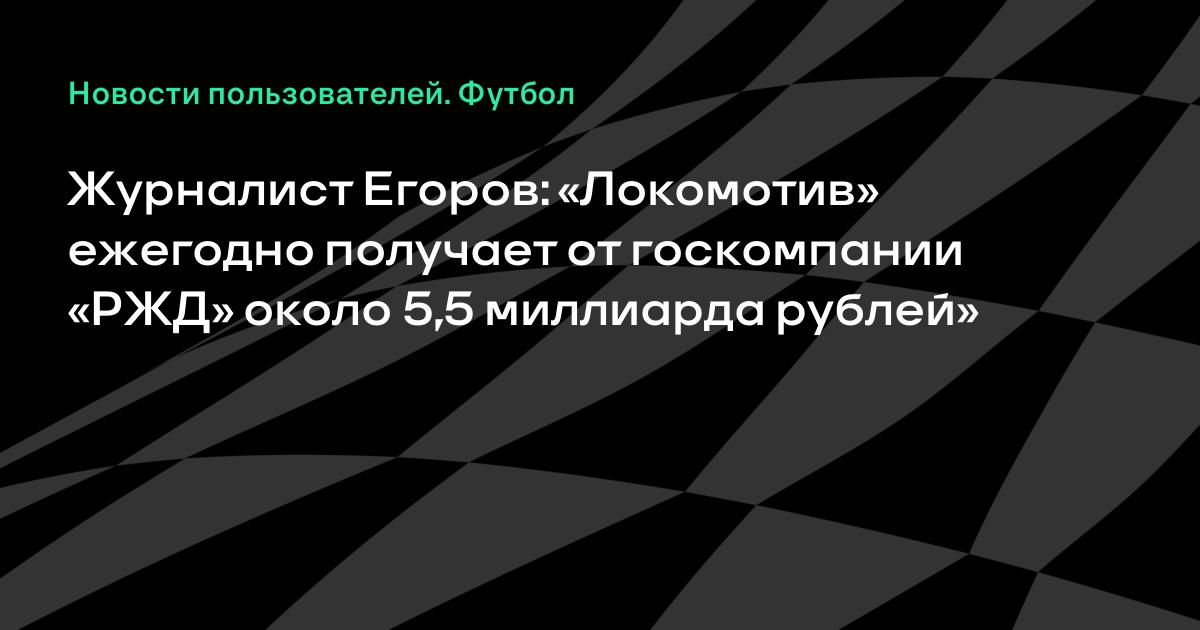 Журналист Егоров: «Локомотив» ежегодно получает от госкомпании «РЖД» около 5,5 миллиарда рублей»